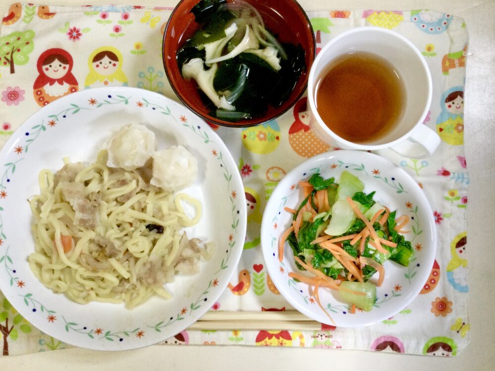 12月3日のきゅうしょく Posted 2025年12月3日 by 松本中央幼稚園 ・醬油焼きそば ・麦茶 ・ワカメと舞茸の中華スープ ・エビ焼売 ・青梗菜のナムル 本当は、右に中華スープを置くはずが・・<(_ _)>失礼いたしました。