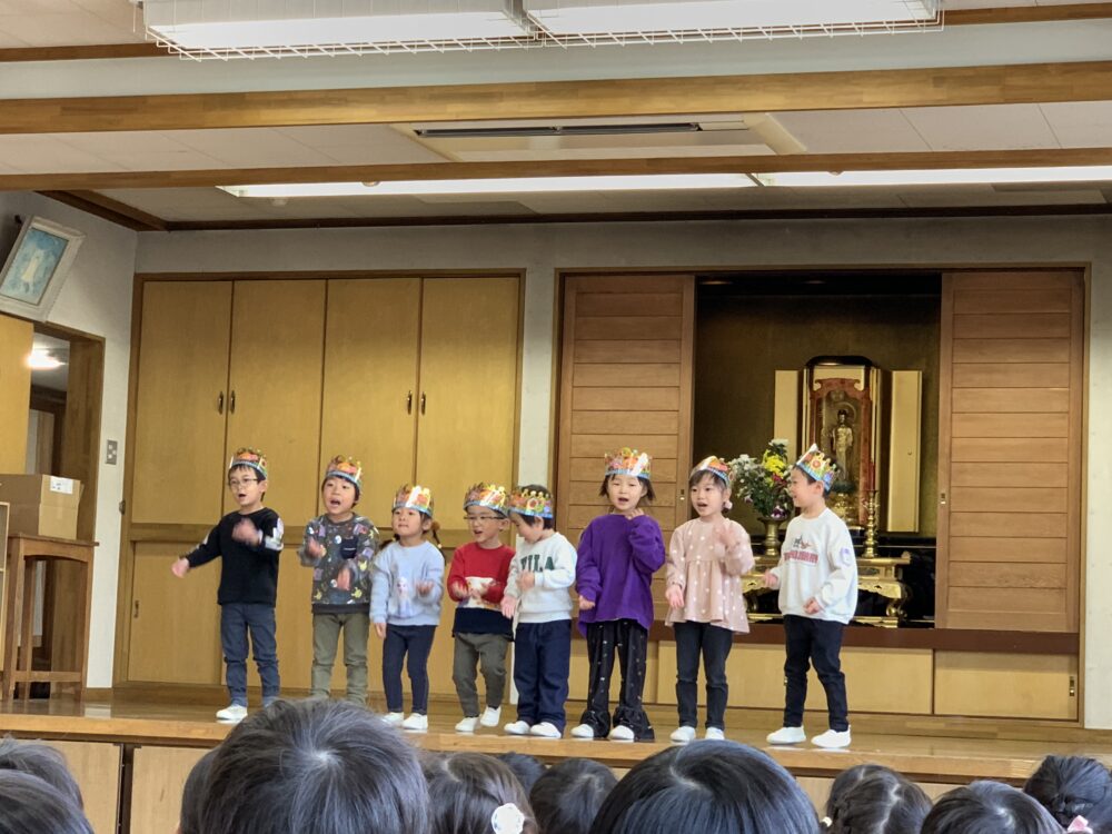 12月生まれのお友だちの誕生会をおこないました🎂 Posted 2025年12月23日 by 松本中央幼稚園 12月生まれのお友だちの誕生会を開催し、 今月は8名のお友だちが発表をおこないました。 発表は、「やきいもグーチーパー」の歌に合わせて じゃんけん遊びをはりきっておこないました! お誕生日のみなさん、おめでとうございます!