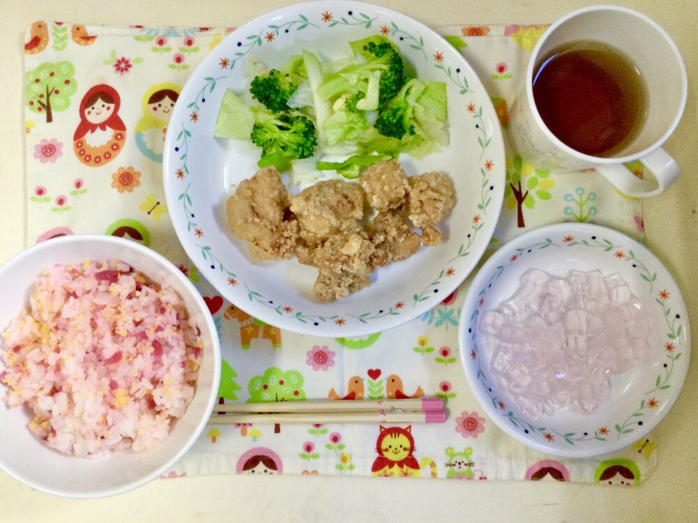 1月16日のきゅうしょく Posted 2026年1月16日 by 松本中央幼稚園 【1月の誕生会】 ・カリカリ梅ごはん ・麦茶 ・鶏唐揚げ ・グリーンサラダ ・ダイスゼリー(ピーチ味) 1月生まれのおともだち!\お誕生日おめでとうございます/