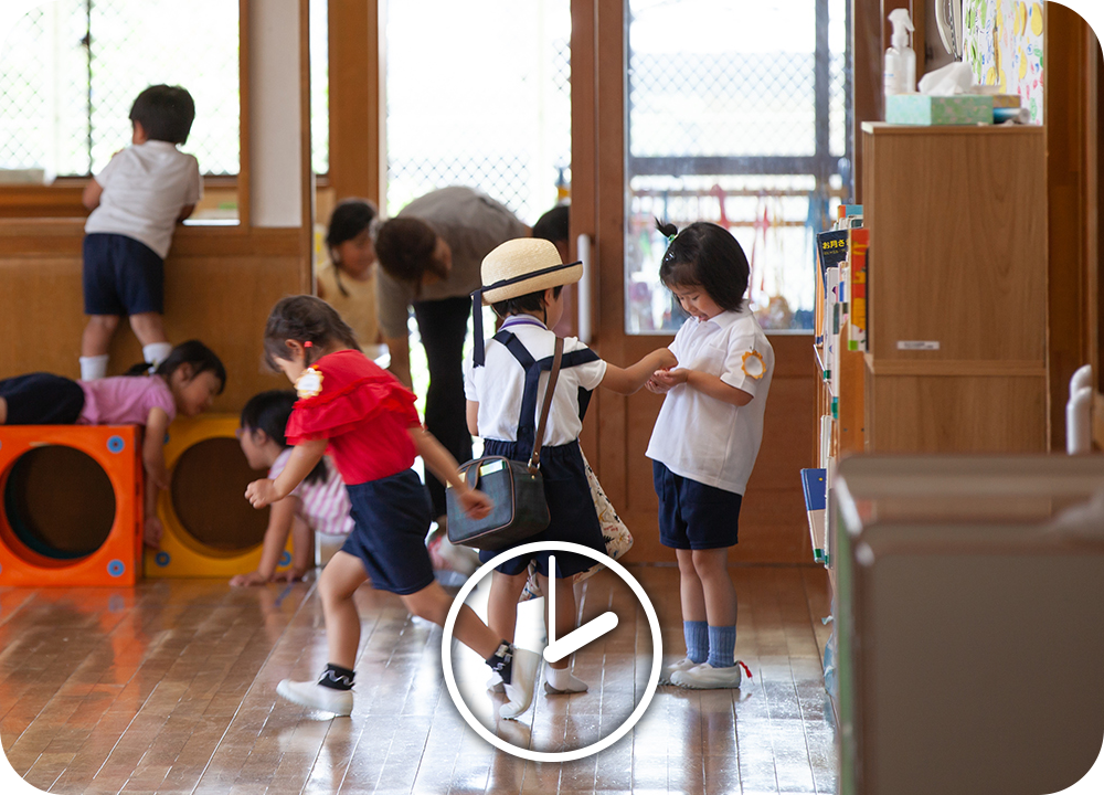 おやつを食べたり、お友だちと好きなあそびを楽しみます。
