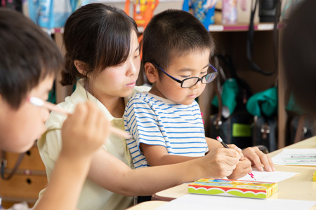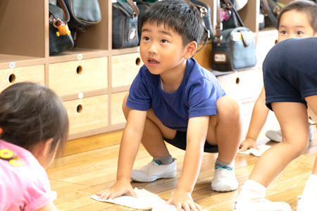 「考える」「試してみる」など、一人ひとりの子どもが自己発揮のできる環境づくりに気を配ります。